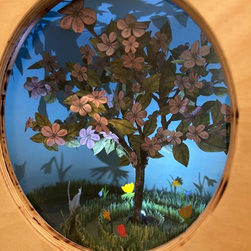Det farverige og sanselige børnebibliotek er skabt i samarbejde med Teaterværkstedet Madam Bach og tager udgangspunkt i temaet De fire årstider. Her inviteres børn og voksne til at gå på opdagelse i et legende univers, hvor læselyst, fantasi og nysgerrighed får plads.