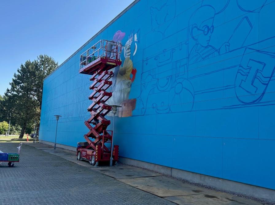 I uge 34 blev Grenaa Bibliotek centrum for kreativ aktivitet, da et nyt og farvestrålende vægmaleri tog form på bygningens nordside.