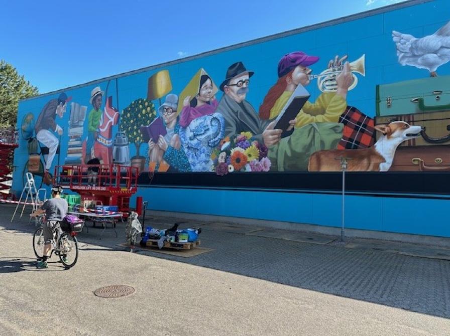 Vægmaleri pryder Grenaa Biblioteks nordside