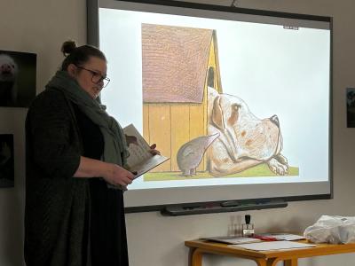 Forfatterforedrag med Morten Dürr for 3. – 4. klasse.Grenaa BibliotekUdløbet